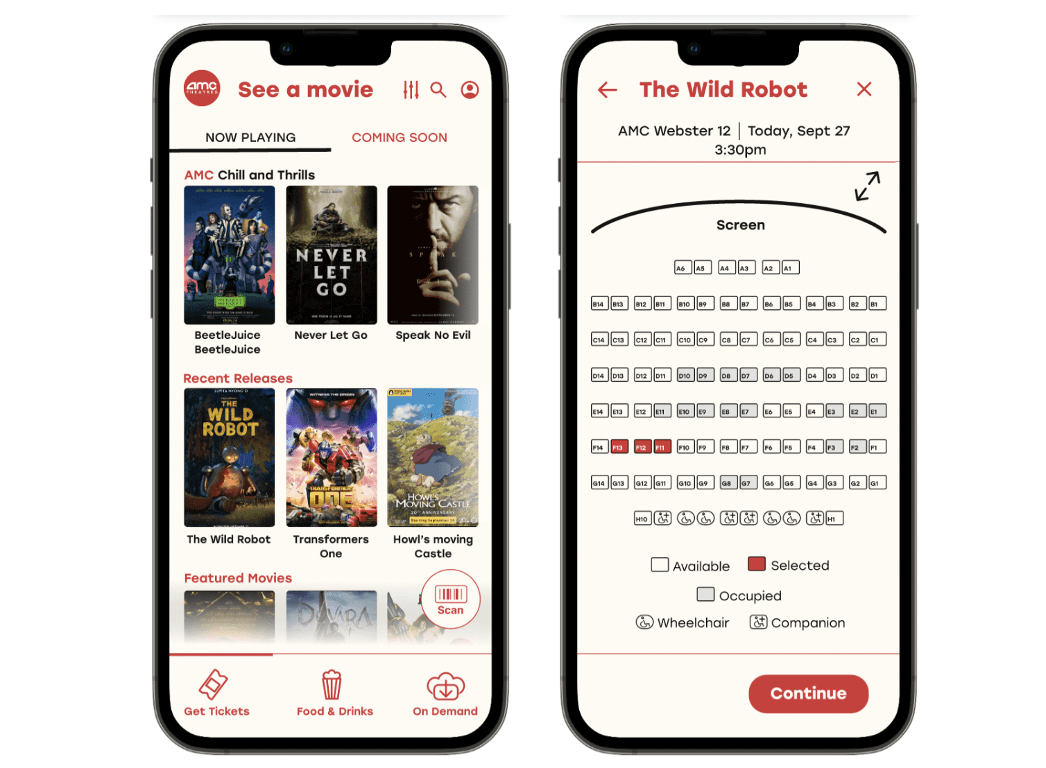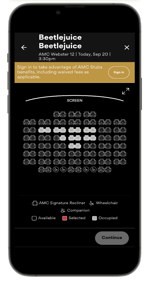 The seating selection can be a pain for any demographic when purchasing movie seats on our phones. Making this aspect of the process as simple as possible while still retaining the necessary information in crucial.