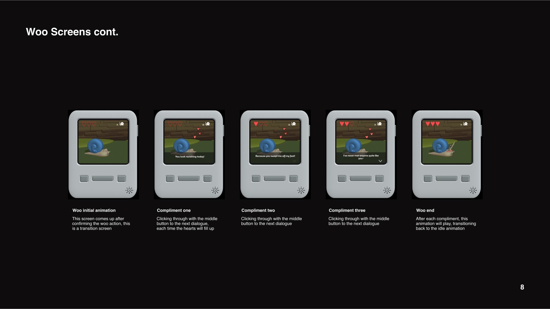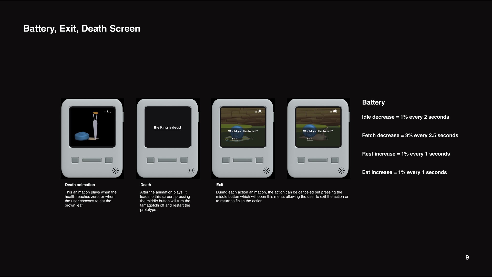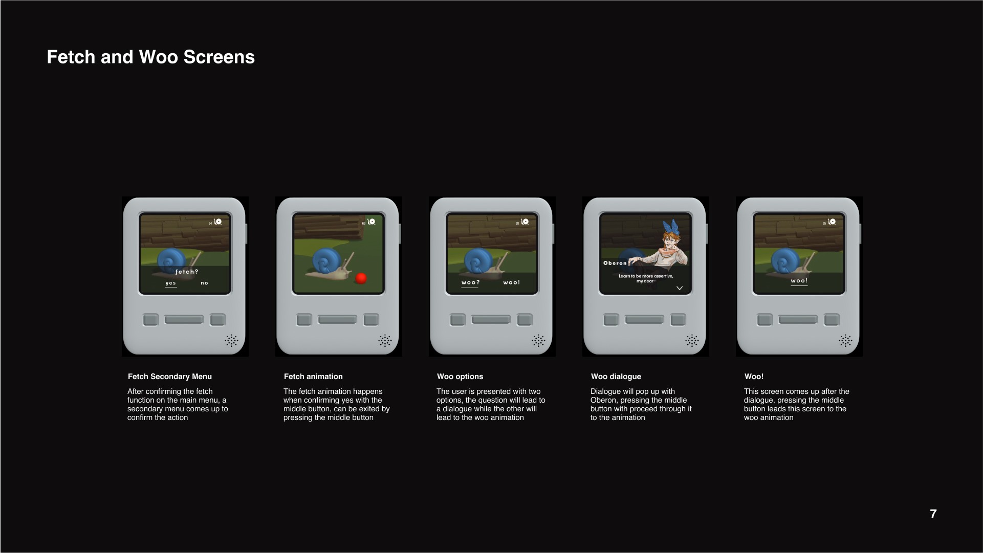 The goal overall was to create an interactive experience that emulated the use of a Tamagotchi.